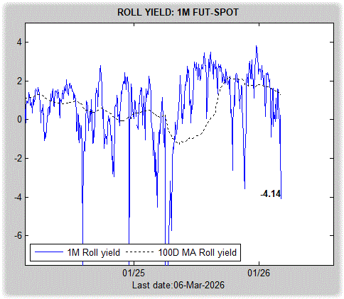 On the volatility front, the VIX index closed above 29 for the first time in more than 200 days. Both spot VIX and futures moved into backwardation, with spot VIX rising much faster than futures, resulting in a strongly negative roll yield.